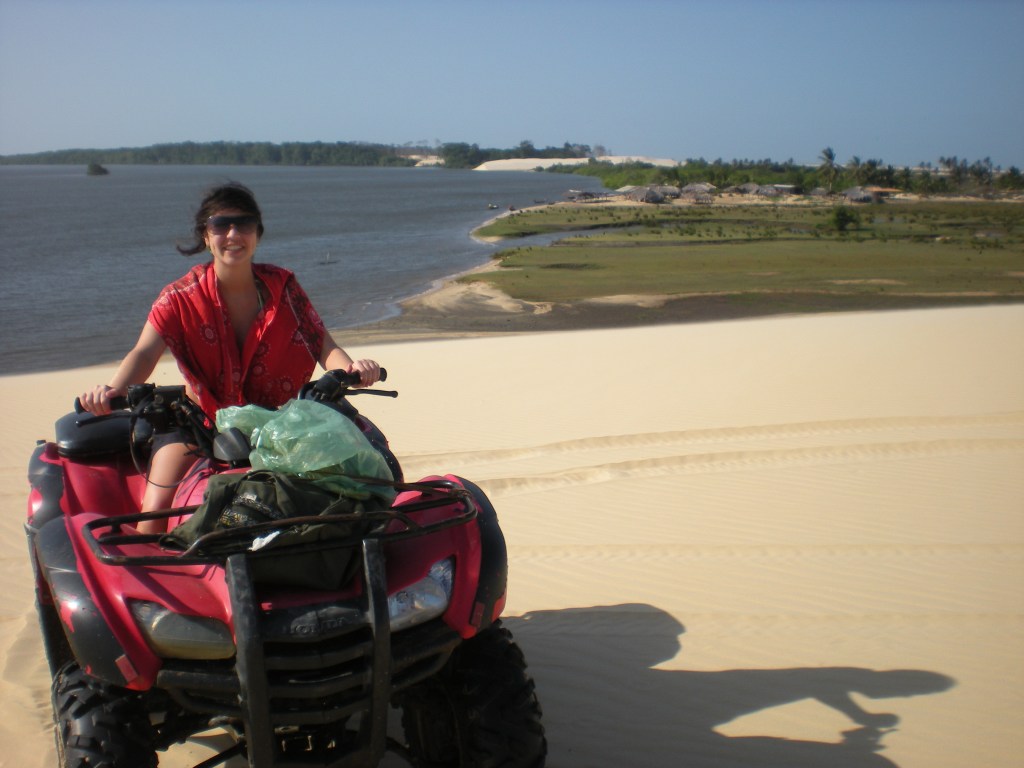 Passeio de lancha + Quadriciclo – Pela manhã saímos de lancha pelo Rio Preguiças em direção a Península do Caburé. A primeira parada é em Vassouras (Pequenos Lençóis), onde vimos os macacos pregos que habitam o mangue. Seguimos rio abaixo até o povoado de Mandacaru, onde está localizado o Farol Preguiças, liberado para subida onde há uma vista panorâmica do Parque dos Lençóis, com as dunas, o rio e sua foz, o oceano e a vegetação típica. Após esta parada, a lancha seguiu para a praia do Caburé, onde paramos para almoçar e depois descansamos nas redes. Depois do descanso, fizemos um rápido treinamento para pilotar os quadriciclos antes de começar o maravilhoso tour pelo meio dos lençóis com paradas para mergulho nas lagoas do caminho. Saída 8:30 / Retorno 17h.