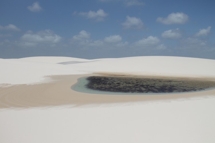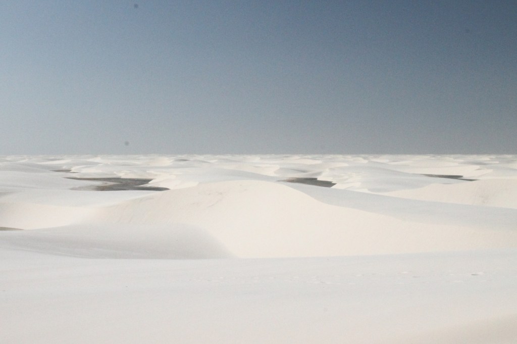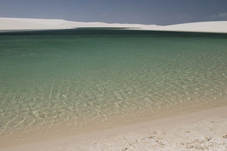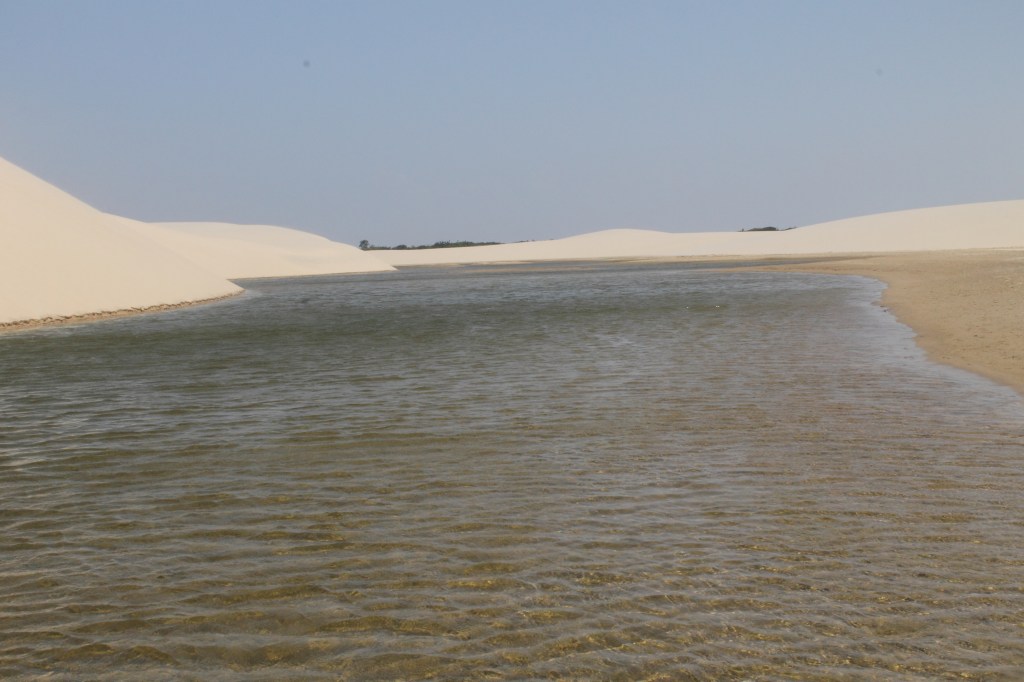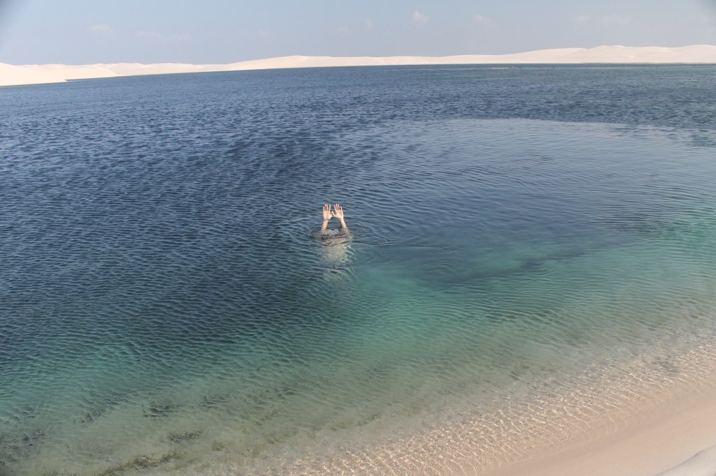Santo Amaro – Dia mais incrível da vida! Conseguimos o contato de um guia de lá (Alex, guia maravilhoso) e fizemos um tour privado de nós 4 com ele. Além de ser muito mais confortável (não subestime o desconforto de andar na caçamba adaptada das caminhonetes dos passeios comuns nos solavancos das dunas), como Santo Amaro fica a 3h de Barreirinhas, foi a melhor maneira de aproveitar o dia. Nosso guia nos levou a lagoas que só ele conhecia e ficamos sozinhos naquela imensidão, com uma lagoa mais linda que a outra (e mais cheia de água também)! Se esse tivesse sido o primeiro passeio, teria achado Barreirinhas bem sem graça. Recomendo fortemente ficar mais de um dia em Santo Amaro e se deslumbrar com esse lugar incrível. Minha amiga que foi recentemente disse que chegando lá eles oferecem inclusive luau nos lençóis ou passeios noturnos para contemplar a lua.