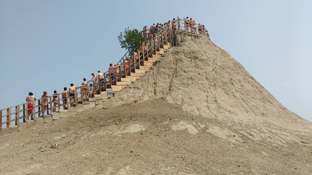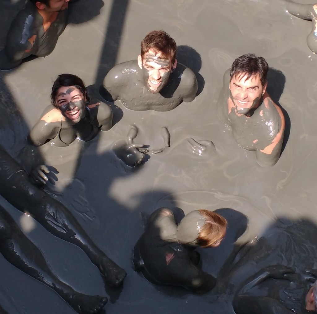 Melhor ainda foi o “banho” para tirar a lama, que, além de pago, consistia em um banco de plástico (parecia um engradado) com uma senhora com um balde de água e uma bucha te esfregando. Apesar de o vulcão ser ao lado do mar, ele é um grande pântano e não dá para nadar, então a lama só sai com o baldinho mesmo. Experiência única.