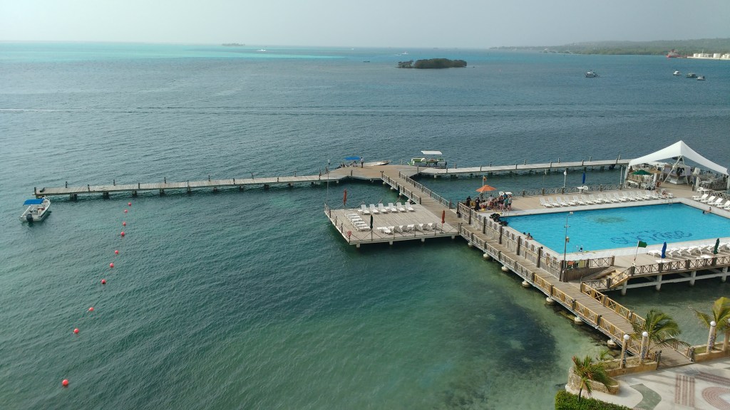 Ir para San Andrés. Acordamos, tomamos café e fomos para o aeroporto. Chegamos em San Andrés à tarde e só ficamos no hotel (o belo hotel GHL Sunrise – maravilhoso!).