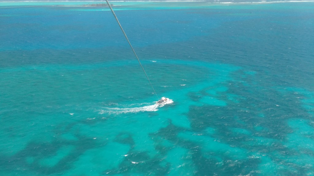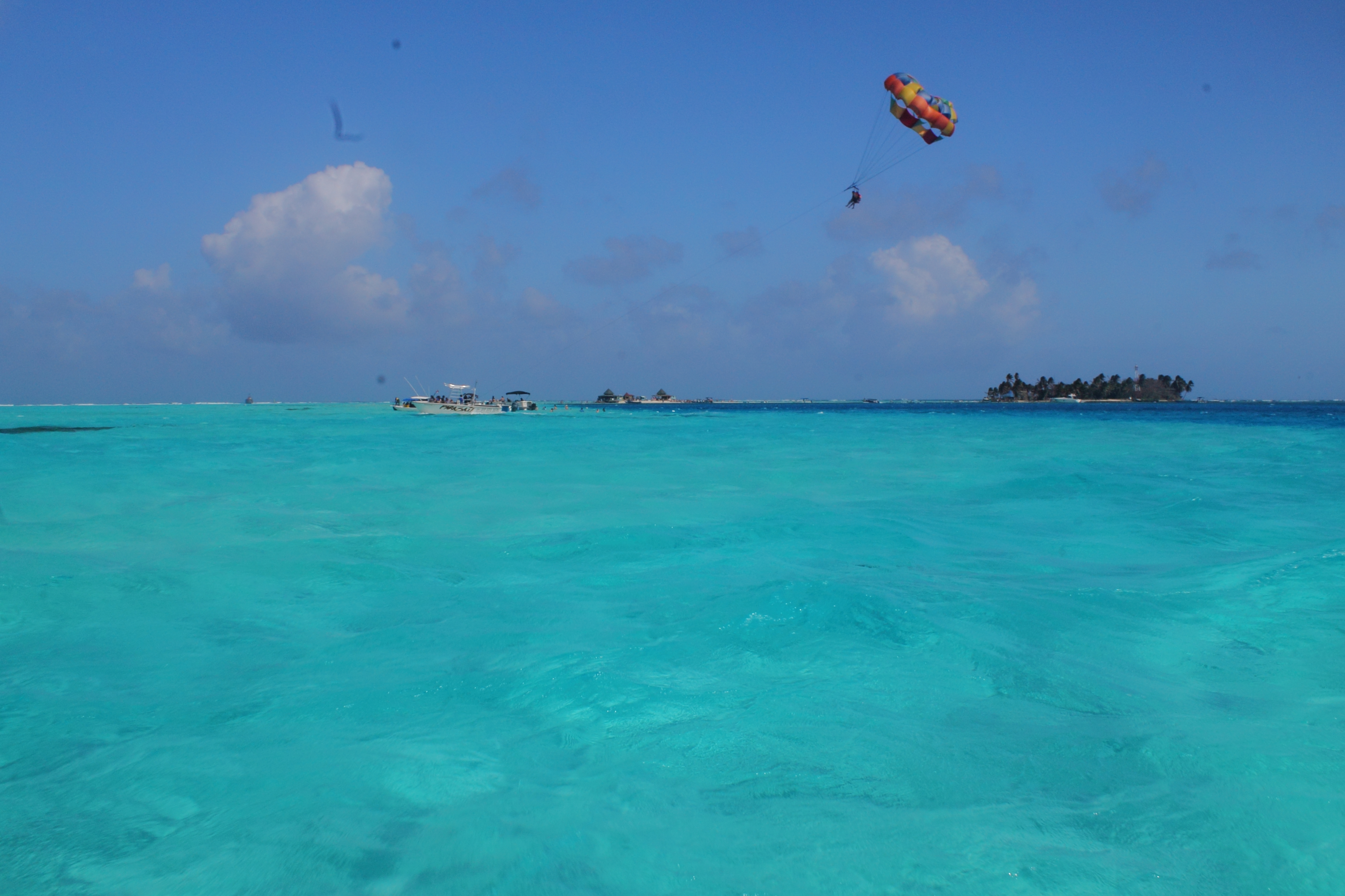 San Andrés – Nós fizemos um grande pacote de passeios direto no hotel para nós 4 e já estávamos há alguns dias na espera do passeio do Parasail, que não sai dependendo de como está o mar e o vento. Nesse dia tínhamos grande expectativa de sair o passeio, então ficamos na praia e na piscina do hotel (que é dentro do mar) aguardando a resposta da agência. Felizmente, o passeio saiu e pudemos ver lá do alto, voando como em um balão, o famoso mar das siete colores. Esse foi com certeza meu passeio favorito!