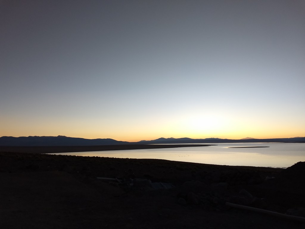 O dia termina com pôr do sol na Laguna Tebenquiche, que também é muito bonita!