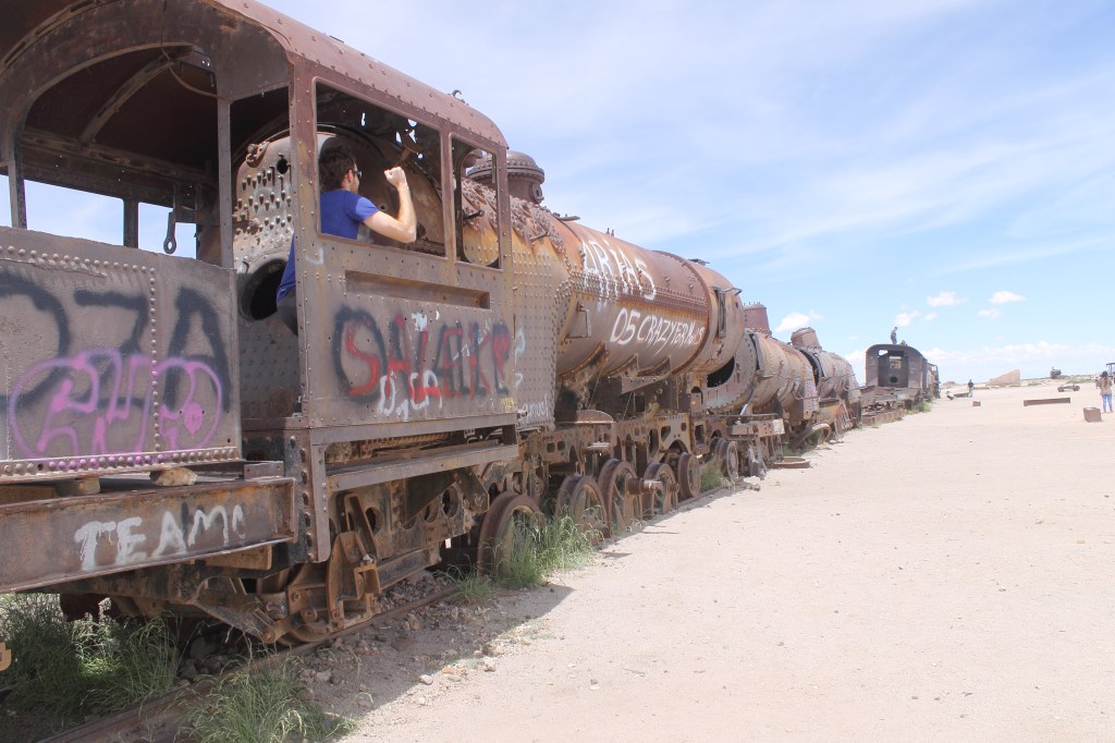 Nesse primeiro dia do tour o passeio começa no cemitério de trens, que permite você subir e explorar trens antigos – é bem divertido!