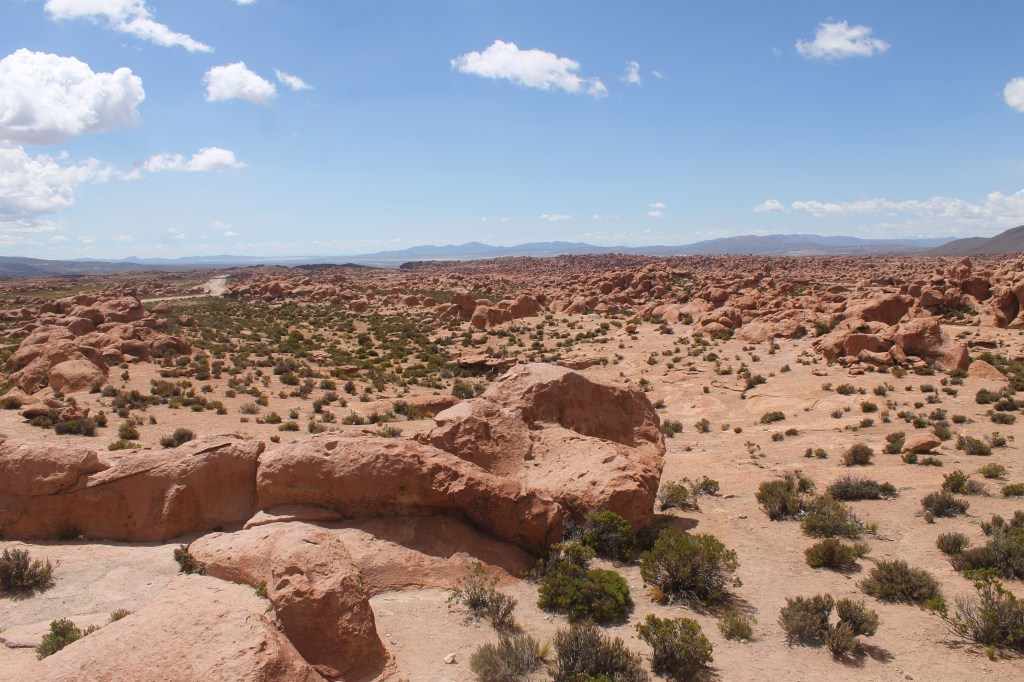 Salar de Uyuni – É bem difícil lembrar os nomes de todos os locais que visitamos, pois o tour é muito completo. Começamos no Valle del Coral, depois o belíssimo (e divertidíssimo) Valle de Rocas, Ollage Volcano, Laguna Cañapa e Laguna Hedionda. Almoçamos em uma mesinha com vista para as lagunas e milhares de flamingos ao redor, além de algumas llamas.