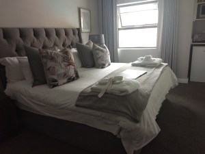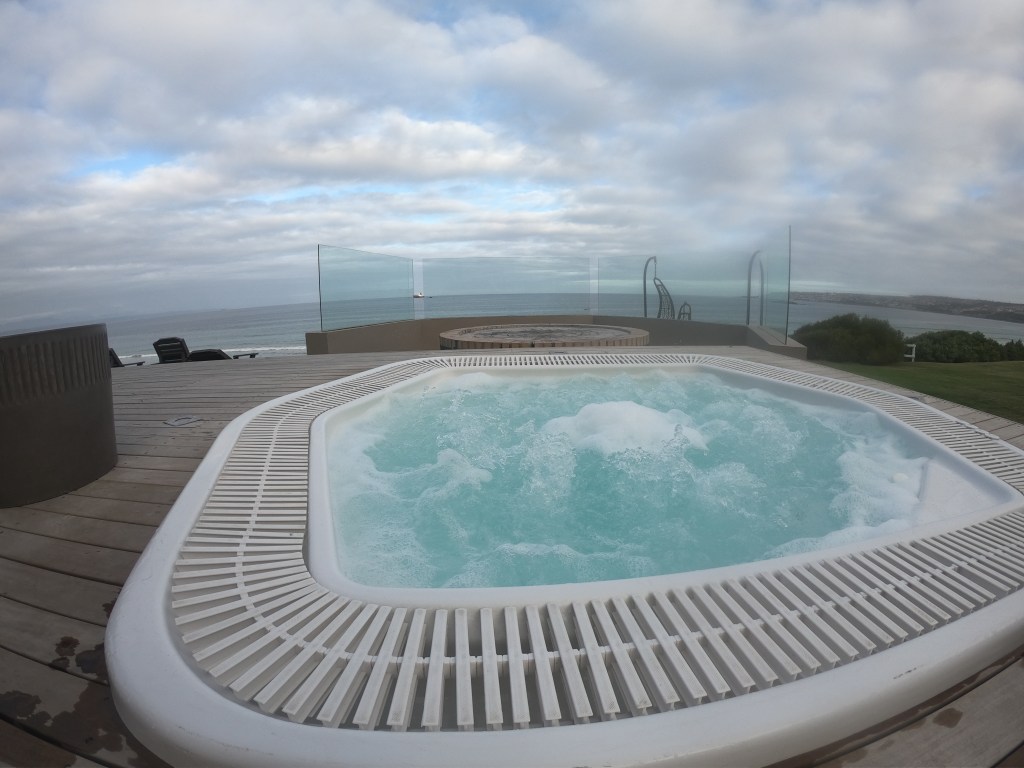 Hotel um pouco mais caro do que a média dos outros, mas que para mim valeu muito a pena! Pagamos 400 reais na diária, o que é alto para nossos padrões e para a África do Sul – em Port Elisabeth, por exemplo, foi 160 reais a diária. Como a minha ideia era aproveitar esse belo hotel de frente para a praia e descansar por um dia, o Bay Lodge mereceu só elogios. Deixaram usar a infra-estrutura antes do check in, o quarto é gigante com banheira com óleos essenciais e sais de banho, ainda conta com uma pequena cozinha, piscina e jacuzzi olhando o mar. O café da manhã também é maravilhoso e tem um menu a ser preparado na cozinha adicional à mesa servida.