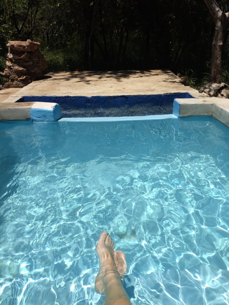 O passeio durou 4h e voltamos 9:30 para o Hotel. Deu tempo de descansar e aproveitar a piscina privativa do quarto do hotel até o próximo passeio, o Sunset Drive, também pelo Kruger. Se o dia anterior teve todo o glamour do safári do hotel, o do Kruger é um caminhão lotado de pessoas e, caso o animal avistado não estivesse na sua janela, era uma grande luta no amontoado de gente para vê-lo. O mais legal desse passeio é ver o pôr do sol na savana e, em especial, os animais a noite. No mais profundo breu você só vê os olhinhos brilhando, milhares deles ao redor do carro. Nesse passeio vimos 4 dos Big Five, então mesmo com 3h de passeio é possível ver bastante coisa na savana.