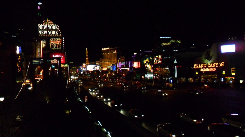 Saímos de uma cidadezinha chamada La Verne, próximo a Los Angeles, onde estudávamos na época e dirigimos 3h30min até Las Vegas. Ao chegar, primeiramente passeamos pela “Strip”, que é como é conhecida a Las Vegas Boulevard.