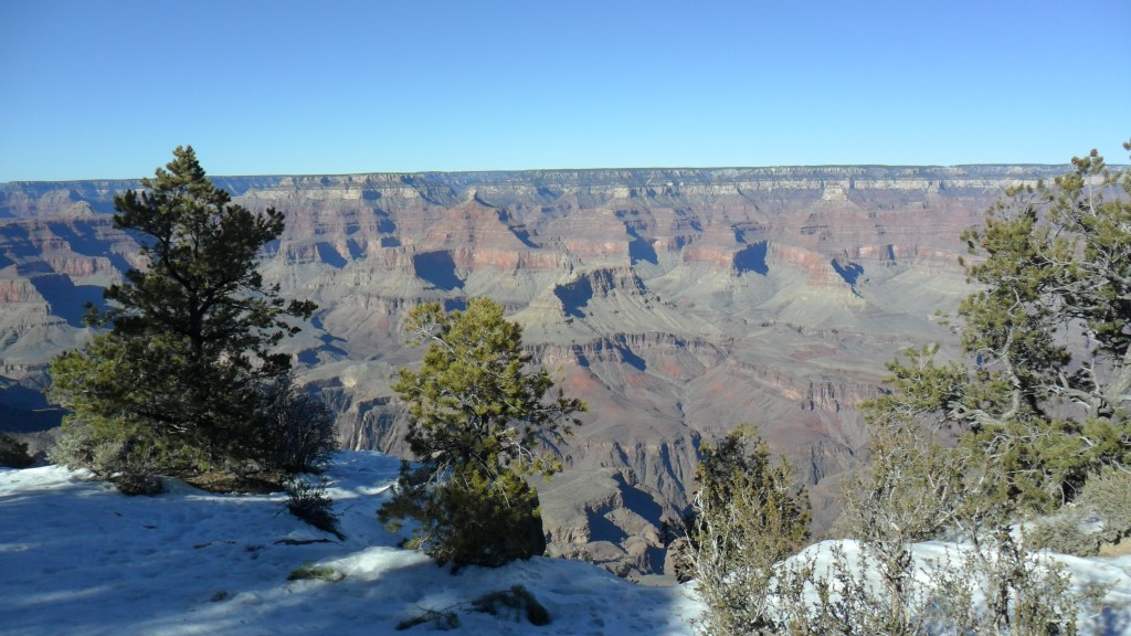 Como disse, compramos no dia anterior em uma empresa sem pesquisar muito, mas foi bem legal! Ele passa pela Hoover Dam e depois segue para dentro do Grand Canyon com várias paradas para apreciar a vista. Curiosidade: Sabia que neva no Grand Canyon? Eu não tinha ideia, mas era inverno e a vista ficou ainda mais linda coberta do branquinho da neve.