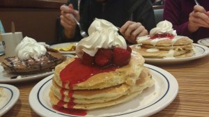 Seja para café ou brunch, IHOP é um ótimo lugar para um ‘café dos campeões’. Minha favorita é a de chocolate branco com framboesa.