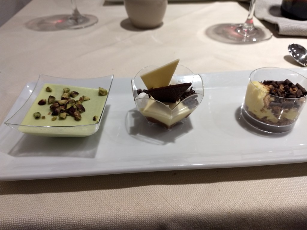 Locanda Tiabuscion – Menu degustação com 3 entradas, prato de massa, prato de carne e 3 sobremesas + garrafa de vinho por 70 euros para duas pessoas. Todos os pratos estavam deliciosos.